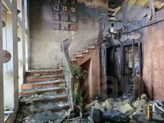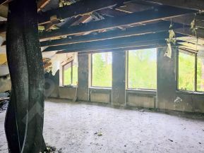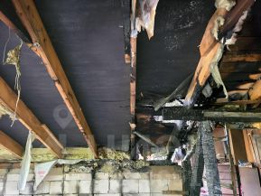 ДОМ под ремонт после пожара. При пожаре пострадали: гараж, кухня, комнаты на втором этаже, несущие конструкции почти не пострадали, потушили быстро. Перекрытие в месте возникновения пожара вскрыто 1,5х1,5м - видны все дефекты. Дом комбинированный газобетон+каркас. Сейчас объект законсервирован. Мусор вывезен, окна закрыты.