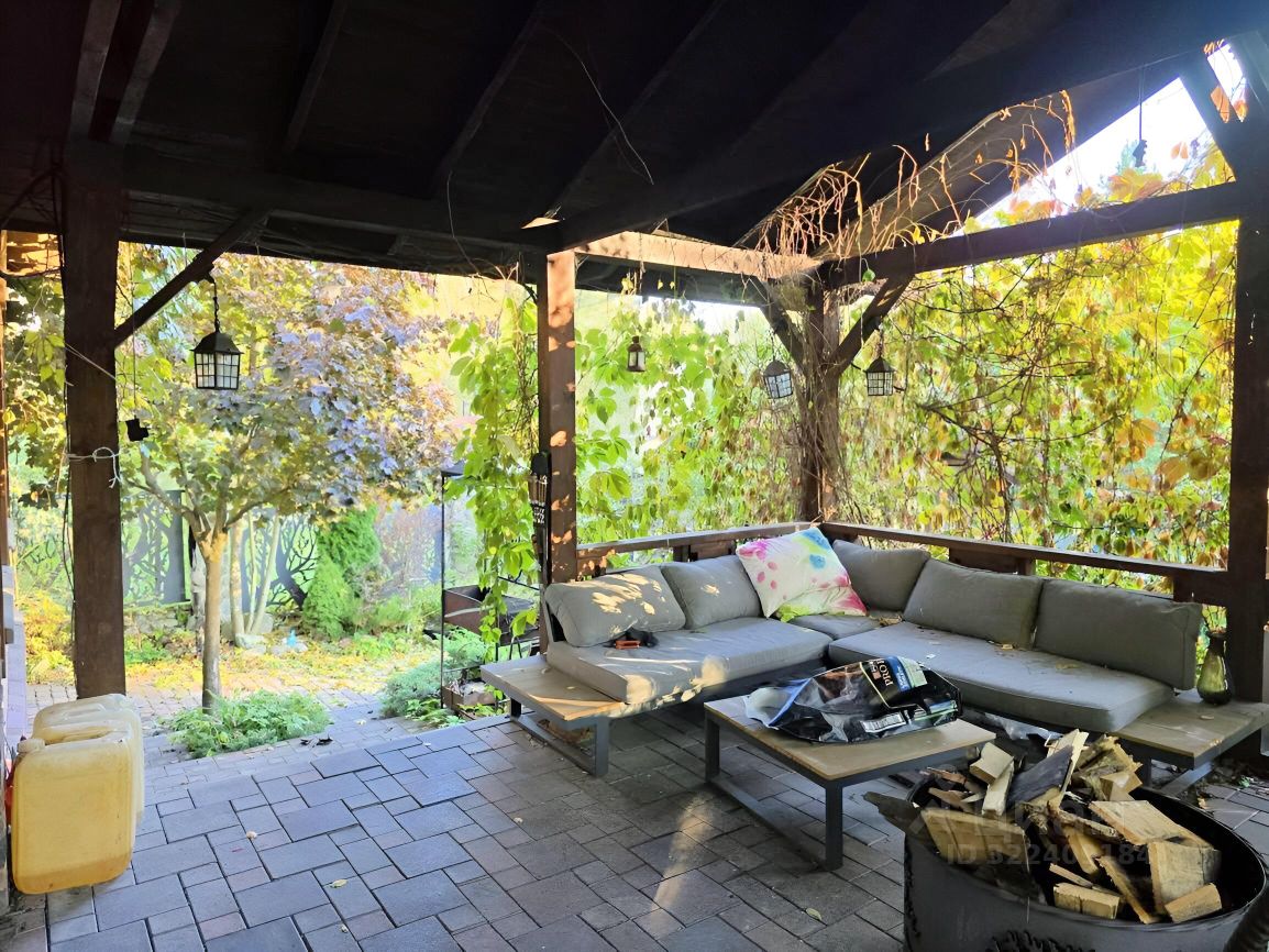 УЧАСТОК 13,1 сотка, сухой и ровный. Удобный круглогодичный подъезд, своя большая парковка, большой отапливаемый гараж. Дом спроектирован так, что на участке дорогу не слышно и не видно. Участок выходит к зеленой зоне и ручью. Соседи только с двух сторон.