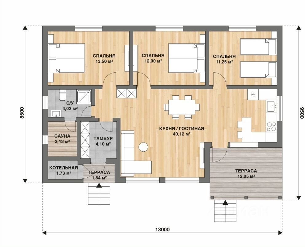 Теплый водяной пол в стяжке, отделка внутри и снаружи, земельный участок все в стоимости