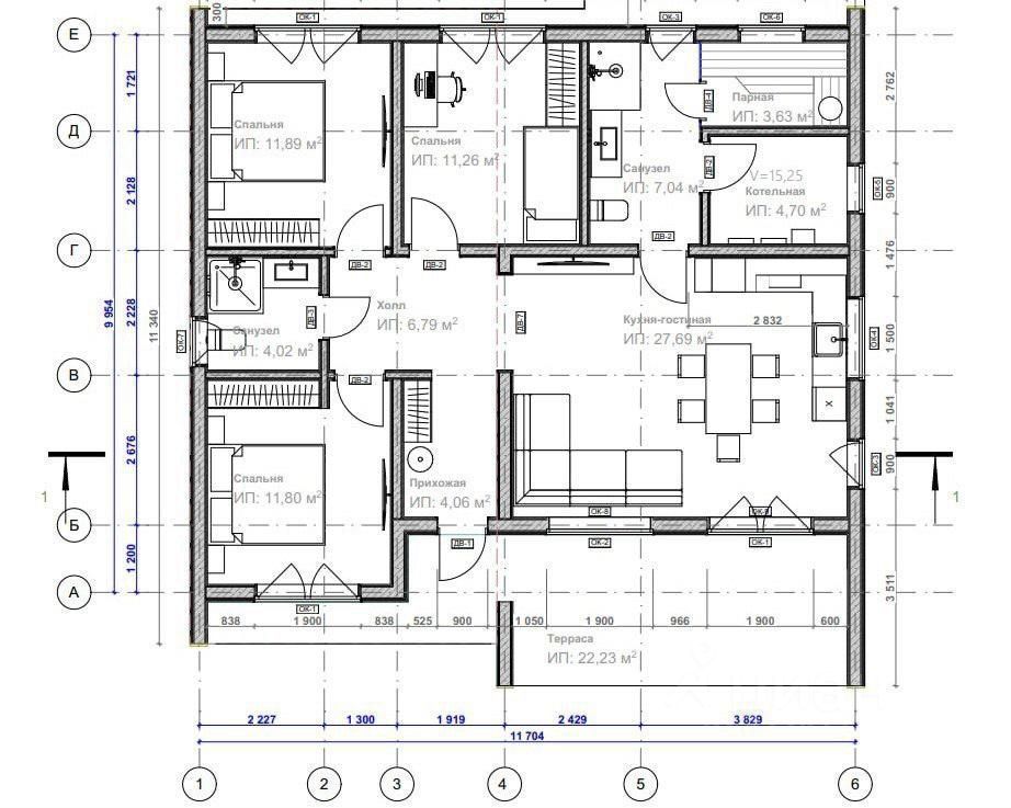 Два санузла и сауна из термодревесины