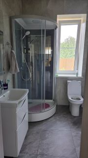 Коммуникации: эл-во 3ф.-30кВт.+ рез.генератор 3ф. 7кВт.; отопление газовое(радиаторы, теплый пол в санузлах и прихожей),гараж и мастерская электрическое; водоснабжение-скважина(питьевая); канализация-ЛОС Астра-5(с отводом в водосточную канаву).