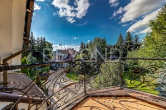 Дом площадью 347 кв. м спроектирован и построен по индивидуальному проекту. В облицовке использованы такие материалы как цельный гранит, авторская ковка, латунная система водоотлива.
