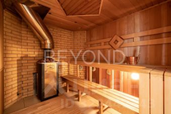 Гостевой дом, общей площадью 210 кв. м: на первом этаже спа-зона (бассейн, джакузи, хамам и русская парная). На втором этаже расположена мастер-спальня с большой гардеробной зоной, кухня-гостиная с камином.