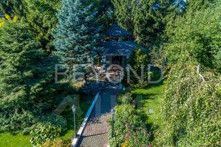 Участок полностью облагорожен, произведены все ландшафтные работы. Высажены плодовые деревья и цветы. В пруду водится рыба. Есть зимняя беседка с мангальной зоной, гараж на 3 машиноместа и отдельное жилое помещение для персонала.