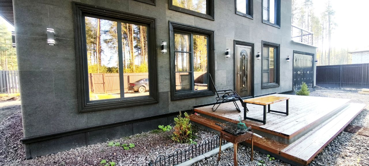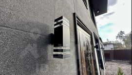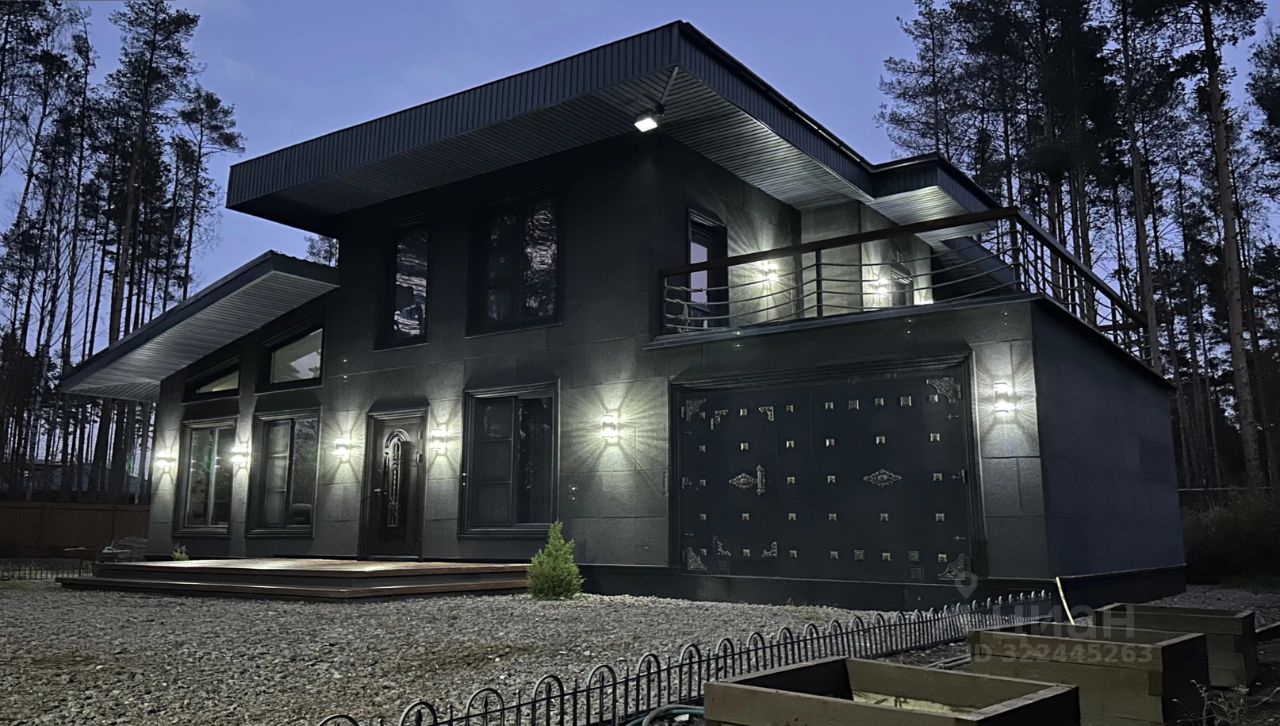 По фасаду установлены подсветка дома, освещение территории и видеонаблюдение с автоматическим управлением.