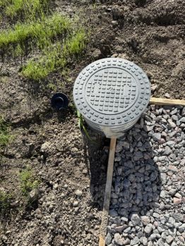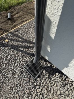 Выполнен дренаж участка, Выполнен сбор дождевой воды с кровли. Установлен дренажный колодец с принудительным выбросом воды в дренажную канаву.