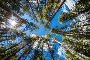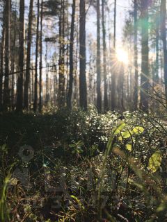 -Вокруг сосновый лес с грибами и ягодами