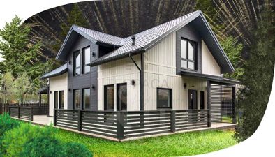 Отделка дома выполнена из фиброцементных панелей Cedral ( Бельгия).