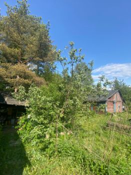 Продаётся участок 6 соток раскорчёванный и выровненный. На участок есть заезд для легкового и грузового транспорта( труба металлическая диаметр 1 метр) есть садовые деревья(яблони, каринка, черноплодка, калина, крыжовник) есть сосны и берёзы. На участке есть 2 постройки дом и баня, но под снос на дрова. Есть летний домик на дереве для детей. Рядом в 5-ти минутах ходьбы есть речка, вокруг садоводства лес, есть электричество.