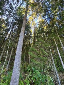 В 50 метрах от участка хвойный леc, памятник природы, вырубке и межеванию не подлежит, вход удобный беспрепятственный, место тихое, спокойное, трассу не слышно