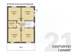 На втором этаже совмещенный с/у 4.10 м2, 4 спальни (15.2+15.2+14.7+14.7) м2.