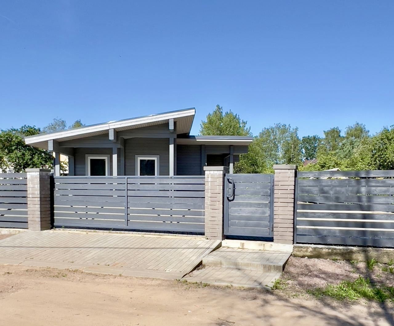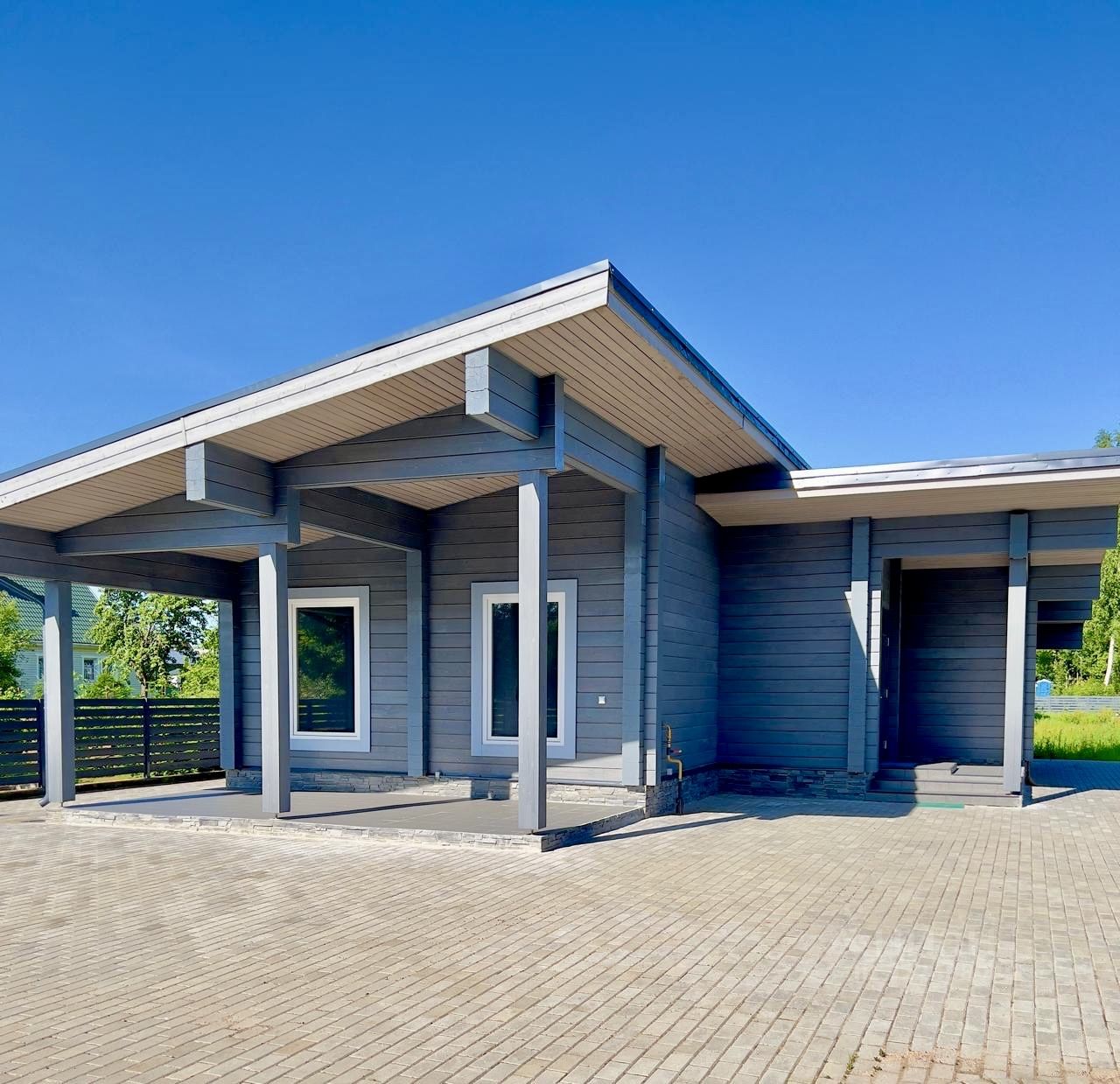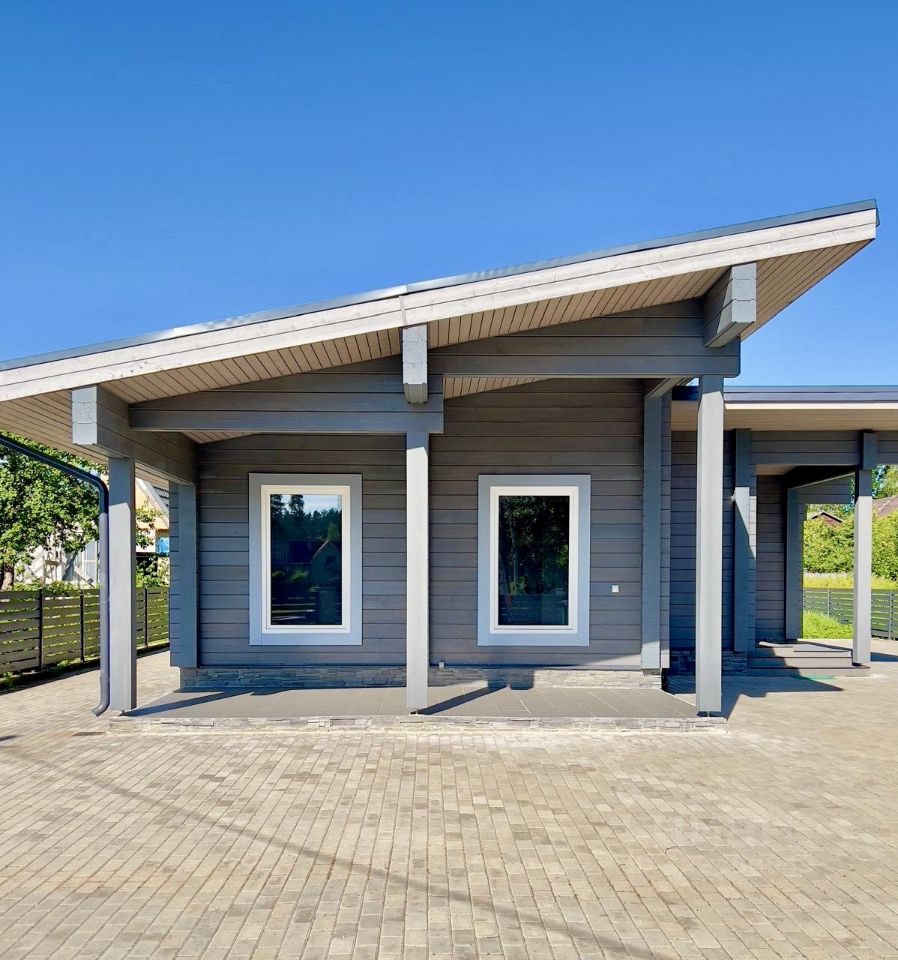 В Вырице Гатчинского района ЛО на ПЕРВОЙ БЕРЕГОВОЙ ЛИНИИ реки Оредеж продается современный стильный дом 90 кв метров плюс 17 кв метров открытая веранда с видом на реку. Стены выполнены из клееного профилированного бруса 187х205 мм. Фундамент дома - монолитная армированная плита 300 мм с утеплением. Крыша - гибкая ламинированная черепица Docke Dragon с утеплением 250 мм. Установлена система ливнестока с отводом воды в дренажный колодец с полем фильтрации. В доме располагаются: две спальни по 12,5 кв метров, кухня-гостиная 29 кв метров (при необходимости третьей спальни, ее можно легко разделить на отдельную комнату и кухню), прихожая, два санузла, один с душевой и сауной, техническое помещение. Из гостиной красивый вид на реку. Отопление - водяные теплые полы по всему дому и радиаторы, подключенные к газовому котлу. Вода поступает из собственной скважины, горячая вода - из бойлера косвенного нагрева емкостью 150 литров. Полы в доме выполнены качественным керамогранитом. В обоих санузлах -