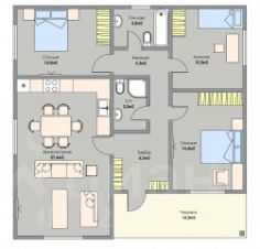 Отделка под ключ: 13.2 млн рублей- внутренняя отделка Натяжные потолки, керамогранит, стены окрашены, санузел: ванна, унитаз, тумба с раковиной, бойлер 120 литров.