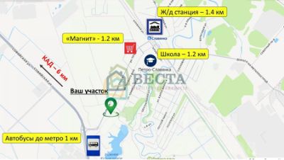 Выгодное транспортное сообщение относительно Санкт-Петербурга - всего 6 км от КАД на автомобиле. В 1.5 км - ж/д станция "Славянка" - всего 20 минут на электричке до центра Санкт-Петербурга.