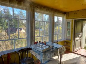 Дом каркасно-щитовой, утепленный, снаружи обшит вагонкой и покрашен; фундамент ж/б блоки; крыша шифер; рамы деревянные. В доме сделаны два входа: осветленная веранда с выходом на второй этаж 12 кв.м.; кухня с установленной кирпичной печью плитой и щитом отопления 11 кв.м.; две спальни по 10 кв.м.; летняя кухня/веранда 14 кв.м. На втором этаже: холл + спальня 15 кв.м. Дом полностью готов к проживанию. Продается с мебелью.