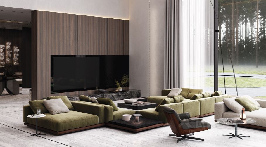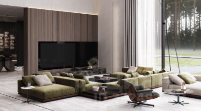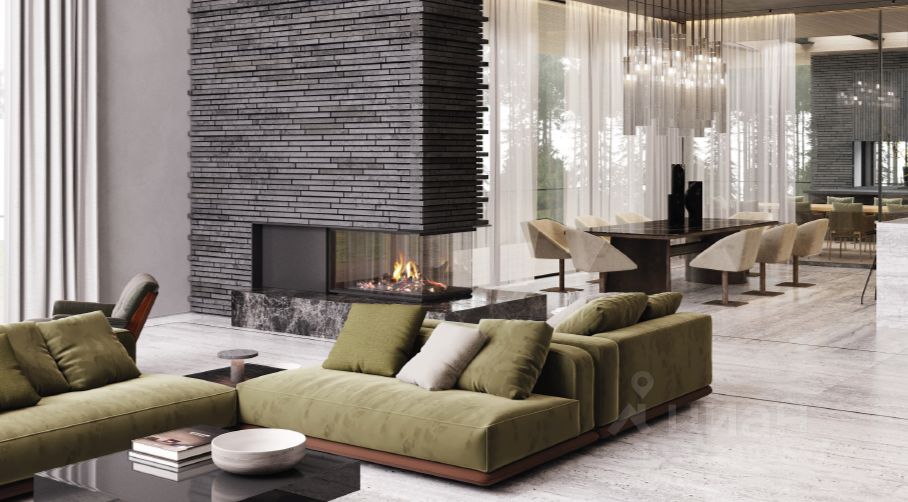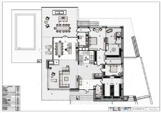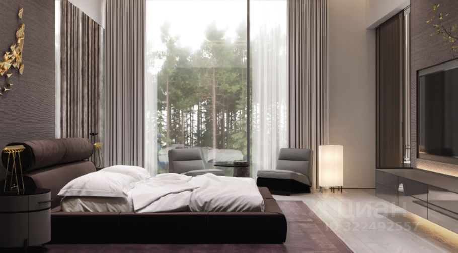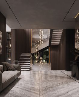 Трёхэтажный дом общей площадью 1 142 кв.м. расположился на 50 сотках земли. Участок граничит с лесом, основная часть дома развернута к лесу. В доме 5 спален, в каждой спальне своя собственная ванная комната и гардеробная, просторная кухня гостинная площадью 116 кв.м. с потрясающими панорамными окнами, техническая кухня, террасы, зона патио. В зоне спа имеются: сауна, хамам, комната отдыха, тренажерный зал, открытый бассейн и техническое помещение бассейна. Так же на первом этаже имеется крытый гараж на 4 машиноместа и открытый гараж на 6-7 автомобилей.