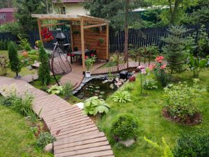 Дорожки на участке сделаны из импрегнированной древесины (вымоченной в спец.растворе) и дополнительно покрыты спец.маслом.