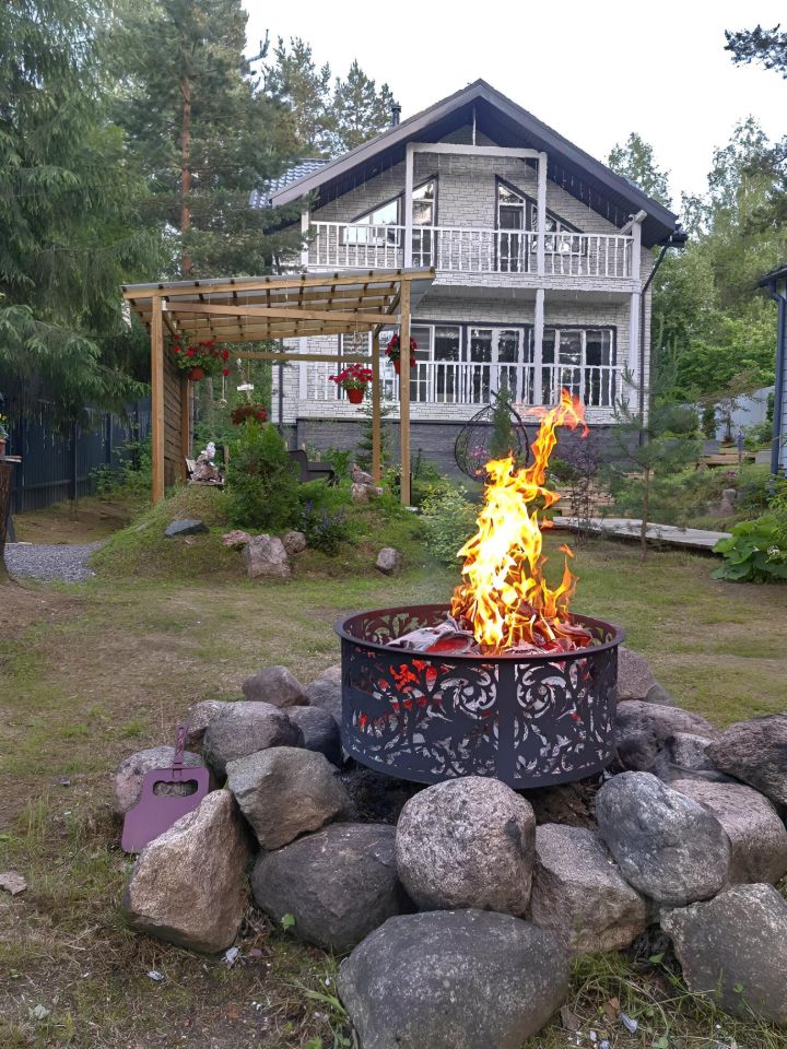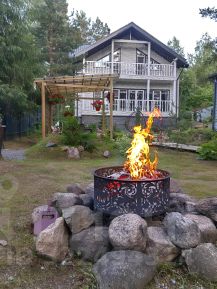 Есть качественные: мангал, коптильня, костровая чаша, зона отдыха с пластиковой мебелью под ротанг. Хоз.блок из двух помещений. Дровенник. Баня квадро-бочка и Восьмиуголная Беседка (5х5м). Беседка утепленная: стены, пол, потолок. С двойными стеклопакетами. С подведенной водой. С небольшой кухонкой и холодильником. Был еще летний душ. Но за ненадобностью в нем сейчас установлен бензиновый генератор на 6500Вт. Все подключено. Куплен в прошлом году. Пару раз запускался зимой.