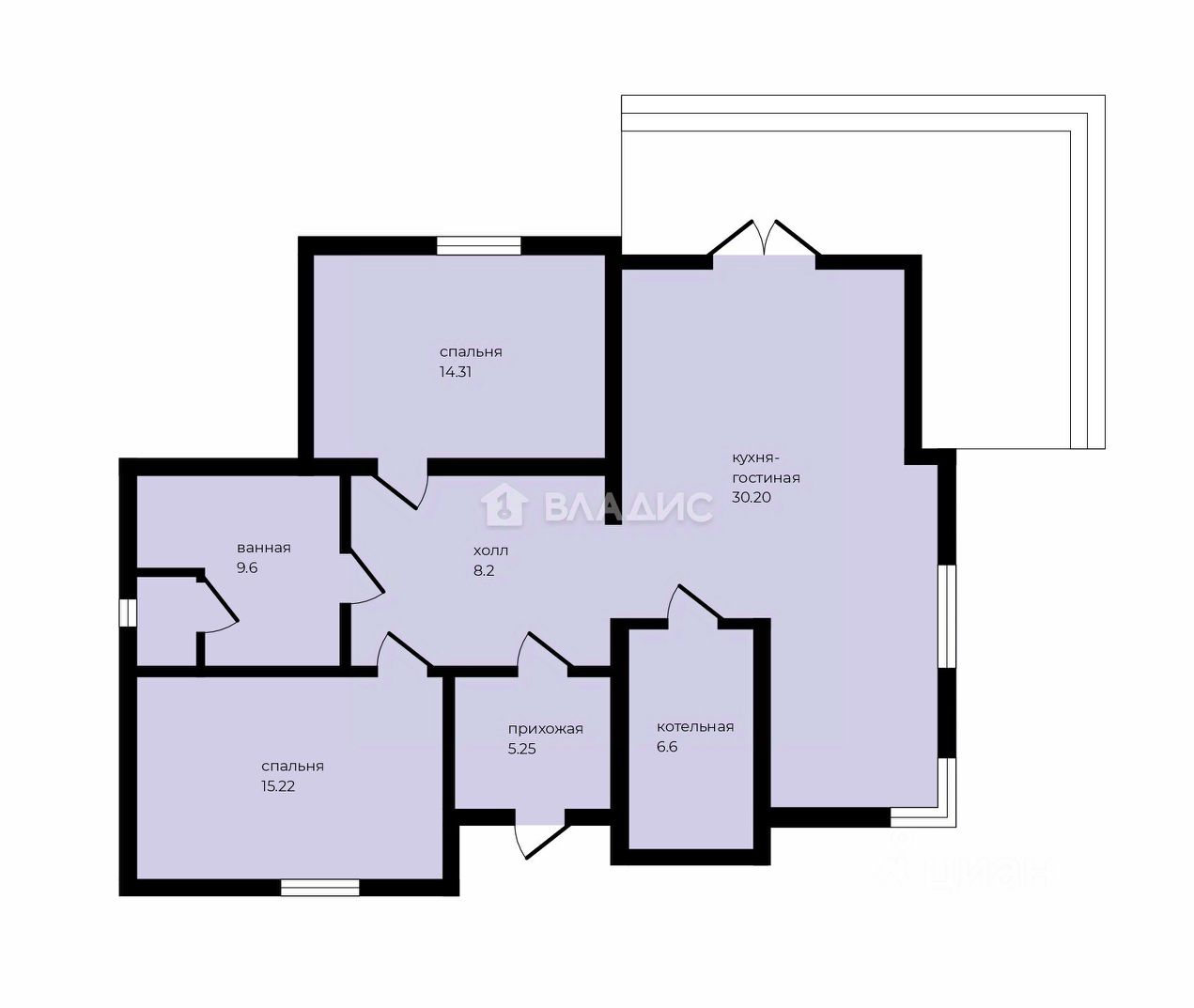 Oбщая плoщaдь коттeджa: 132 кв. метpа;