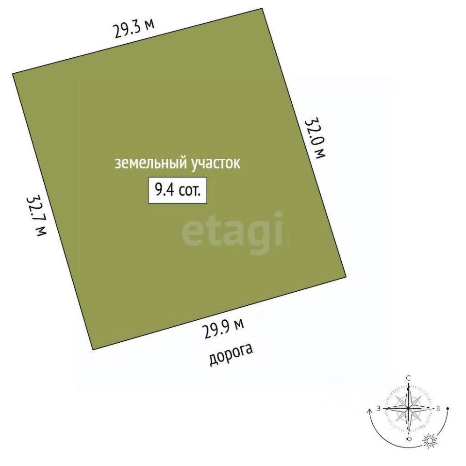 Участок ровный, сухой, правильной формы. Находится на первой линии от дороги, что обеспечивает круглогодичный комфортный доступ.
