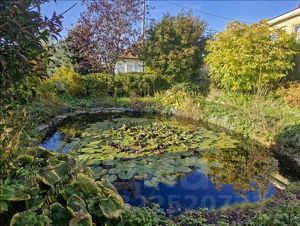 На ухоженном участке 22 сотки c красивым ландшафтным дизайном и садом расположен еще отдельно стоящий домик для гостей с двумя жилыми помещениями с кухонным уголком и печью, навес для автомобиля, теплицы. Заезд с автоматическими воротами. Мощение. Два пруда с нимфеями, море цветов, декоративных деревьев и кустарников.