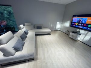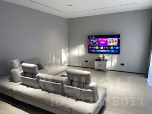 Кухня-гостиная 55м2, в зоне кухни остров и скрытый проход в кладовую, стол 180х90. В зоне гостиной большой угловой диван и телевизор 75 дюймов.