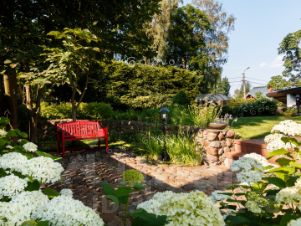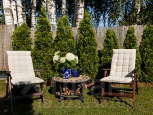 Участок, 10 соток с ухоженным ландшафтом создает ощущение приватности и единения с природой.