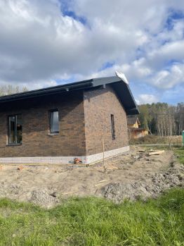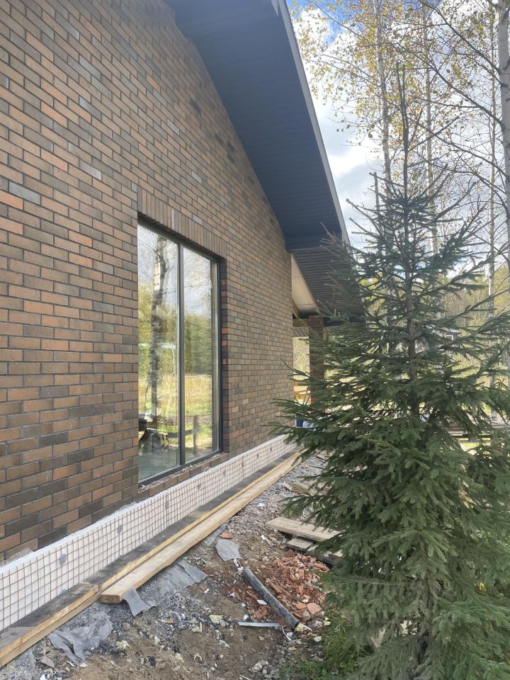 Современный кирпичный дом по проекту Микея для постоянного проживания в уникальной локации у самого леса в тишине, среди высоких деревьев и чистого воздуха.