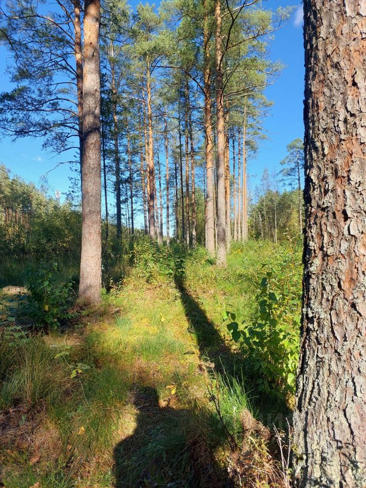 Прекрасный расчищенный участок земли для строительства загородного дома .На участке есть сосны, оставлены только здоровые крепкие деревья .