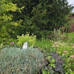- имеются плодовые деревья и кусты, декоративные растения, шикарная ель около крыльца;