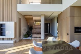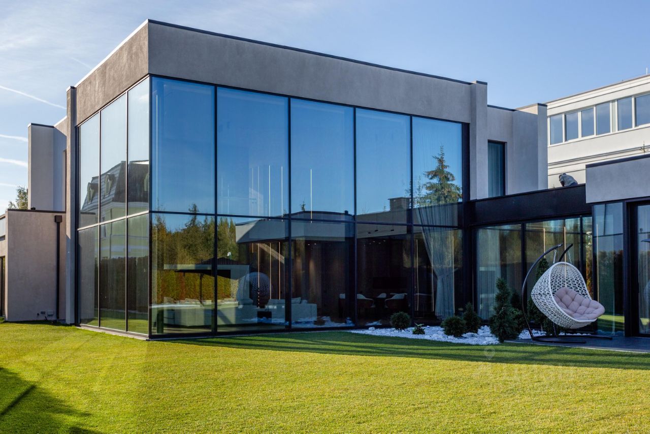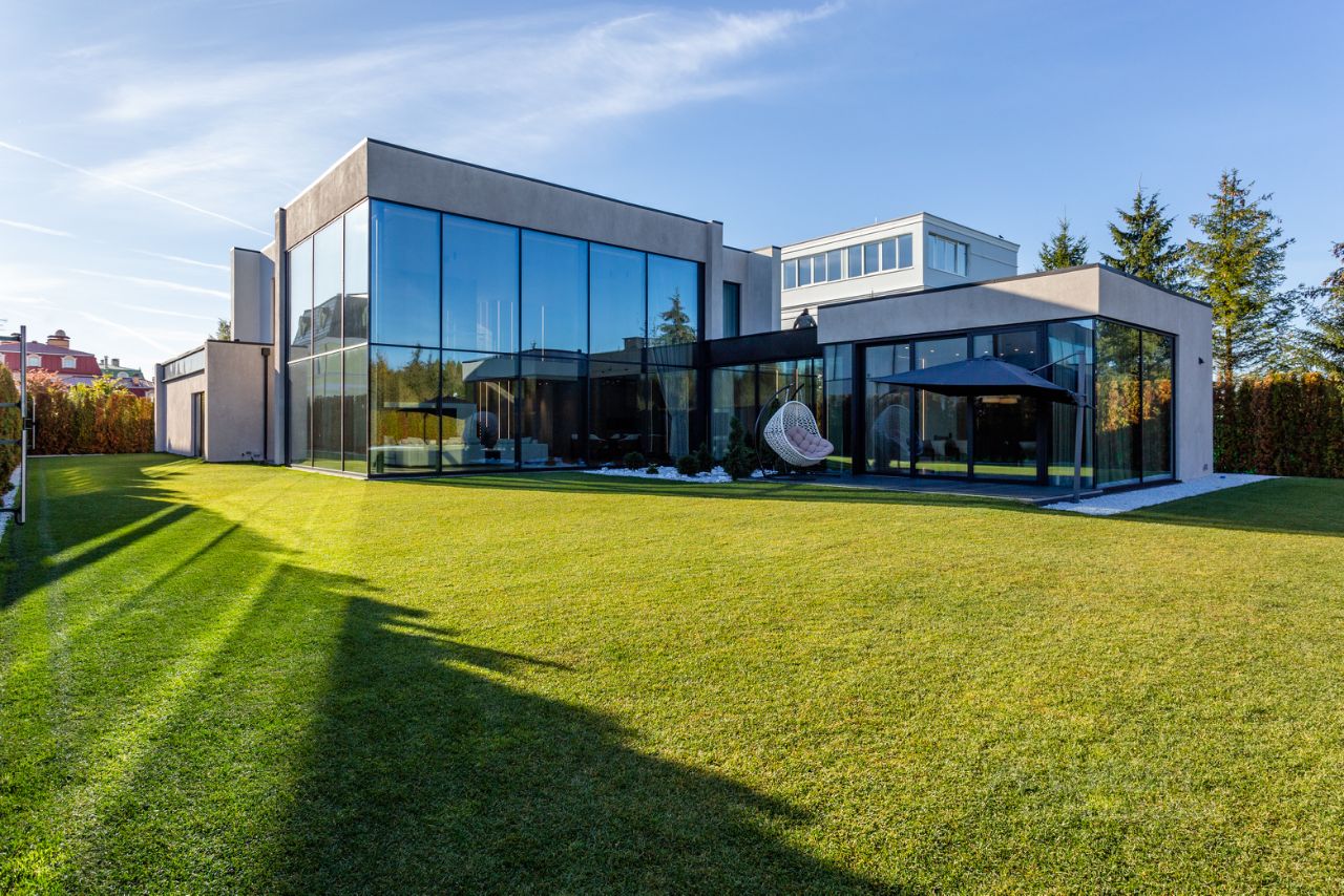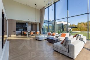 Дом построен по современному проекту. Высокие панорамные окна в кухне-гостиной (8 м) создают ощущение простора и гармоничного слияния с окружающей средой. Высота потолков на первом этаже варьируется от 4 до 8 метров, на втором — 3,5 метра. В теплом контуре дома находится панорамная беседка с оборудованной мангальной зоной, идеально подходящая для семейных и дружеских встреч.