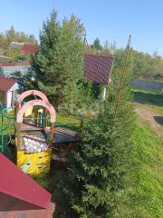 3. Детская площадка - комплекс для детей с горкой и отдельным домиком, качели. Детская площадка с солнечной стороны огорождена посаженными Елями, которые создают на данном участке необходимую полутень для детей, даже в летний полдень можно гулять и отдыхать детям на улице. Так же построена песочница.