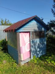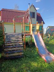 Жилой дом, мастерская, баня, дровник, детская площадка.