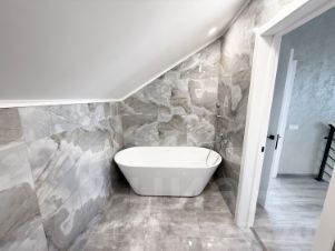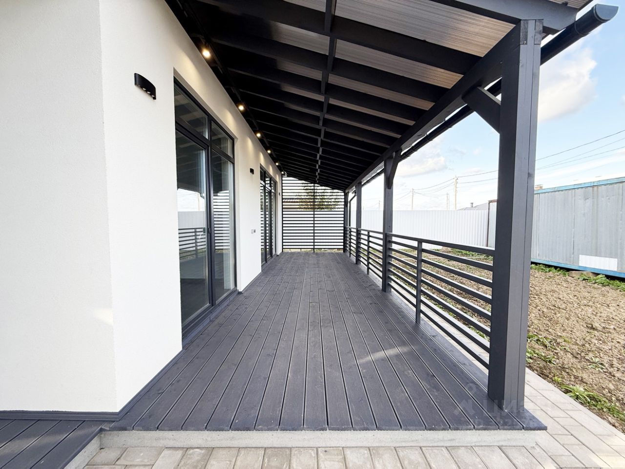 Материал стен - утеплённый каркас, на монолитной плите, с надёжной кровлей из металлочерепицы. Дом с полной внутренней отделкой — можно заехать сразу после покупки.