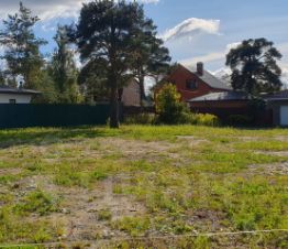 Участок отсыпан, выровнен и расчищен. На участке нет никаких построек, можно сразу строить дом. Есть большая сосна — повесьте качель для детей:)