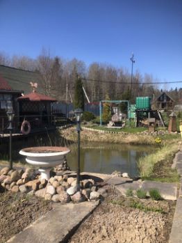 На участке есть пруд, баня , теплицы, садовые деревья, гараж.отличная зона барбекю.Хороший подъезд к дому, свой паркинг.