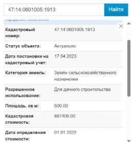 Кадастровый номер: 47:14:0601005:1913