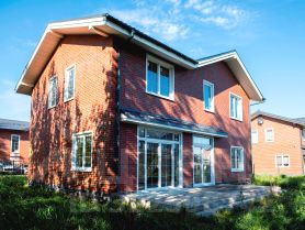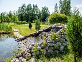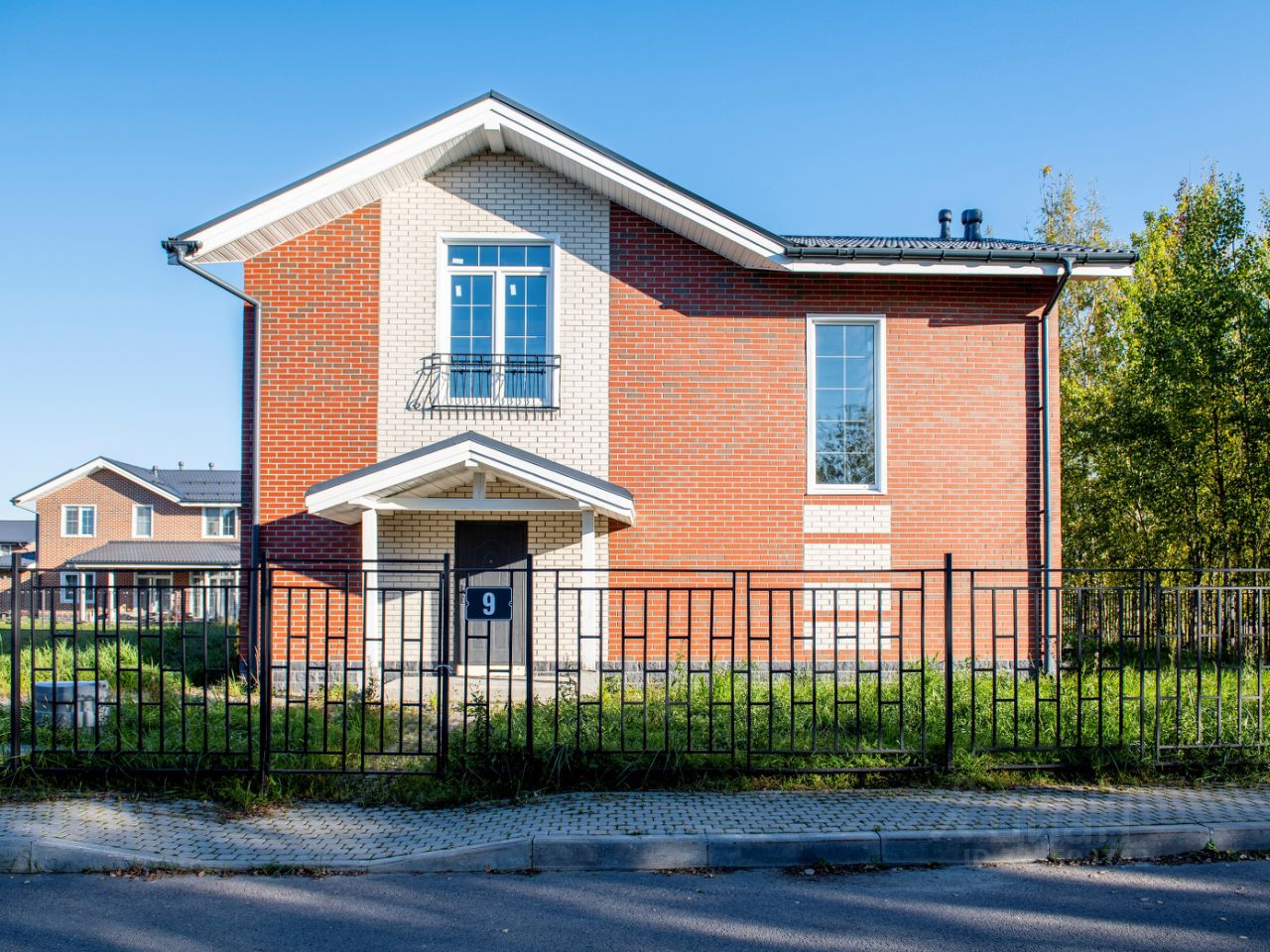 В коттедже площадью 194 кв.м (включая открытую террасу площадью 24 кв.м) на первом этаже разместились кухня-столовая-гостиная, организованные единым пространством, комната для гостей, кладовая/прачечная, тех. помещение и санузел. На втором этаже расположены три комнаты, два санузла и небольшая гардеробная. На участке сделан дренаж, ливневая канализация с отмосткой, выполнено мощение на два машиноместа. К дому подведены все виды инженерного обеспечения - электричество, магистральный газопровод, центральный водопровод, канализация (ЛОС), проведена оптоволоконная сеть. Участок угловой, с одной стороны дорогу отсекает зеленая полоса преимущественно из лиственных деревьев, по двум границам уже проживают соседи, стройка завершена.