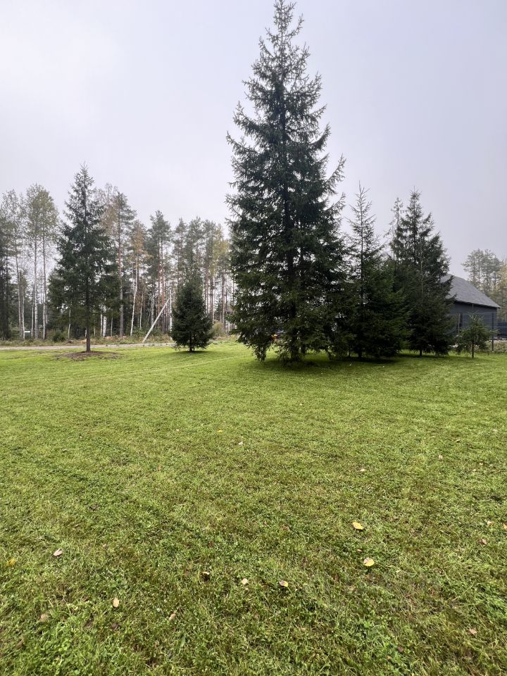 Газон уже засеян — участок выглядит ухоженным и аккуратным.