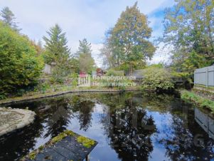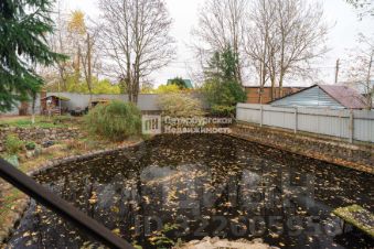 На участке живописный пруд с рыбой. Забор металлический на бетонном ленточном фундаменте. Перед домом большая вымощенная площадка.