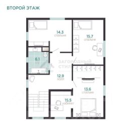 Второй этаж: три изолированные спальни, кабинет и второй санузел.