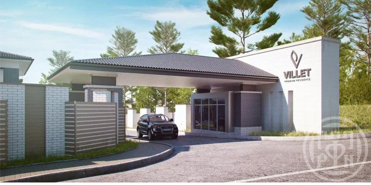 В поселке запланирована входная группа с двумя охраняемыми въездами. Проект въезда на фото.