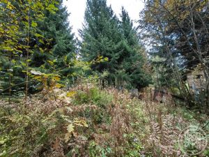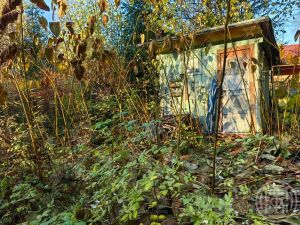 Участок ровный и имеет хорошую плодородную почву. На нем растет множество плодовых деревьев, включая яблони и сливы, а также кусты малины, смородины и клубники.