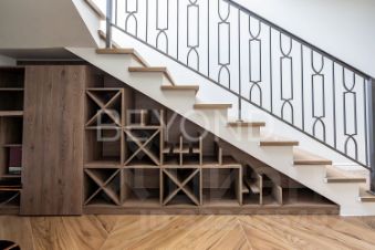 На первом этаже расположены: кухня-столовая с выходом на террасу, гостиная зона, гостевая спальня, гардеробная, постирочная, котельная.