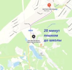 Школа в 3х минутах на автомобиле, либо пешком 20 минут (1,5 км.)