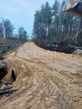 По границе газ, вода и эл.столб около участка. На момент строительства предоставят электричество 5-10 кВт. На данный момент сделано 200м дороги. Место новое и собственник постоянно занимается облагораживанием территории для следующих владельцев.