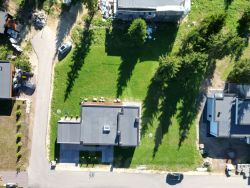 Асфальтовый подъезд до участка, благоустроенная территория, дренаж, ухоженный газон, туи, взрослая ель и место под плодовый сад.