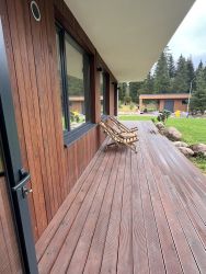 • Фасад: мокрый фасад Ceresit WM + планкен из лиственницы
