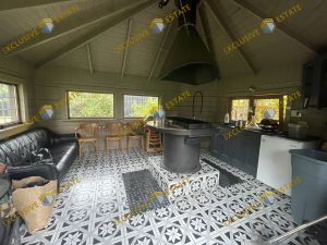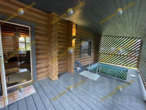 2-х уровневый банный комплекс с бассейном, площадью 114 м² - комнаты отдыха, большая гостиная, витринные окна, большая просторная кухня со встроенной мебель и бытовой техникой, уличная веранда с видом на пруд - это все позволит вам насладиться расслабляющими процедурами и восстановиться после активного отдыха.