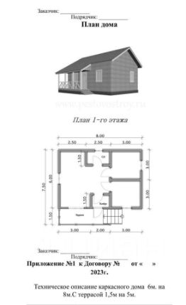Размеры 6 на 8 м.+ терраса 1.5 на 5 м.